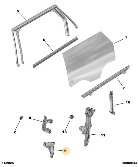 0rijinal Sol Arka Cam Kızağı Peugeot - 5008 P74 GT 9841257680