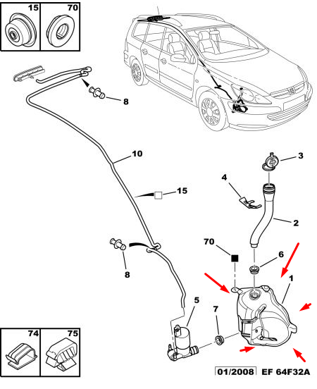 ORIJINAL 307 Cam Suyu Deposu 6431C1