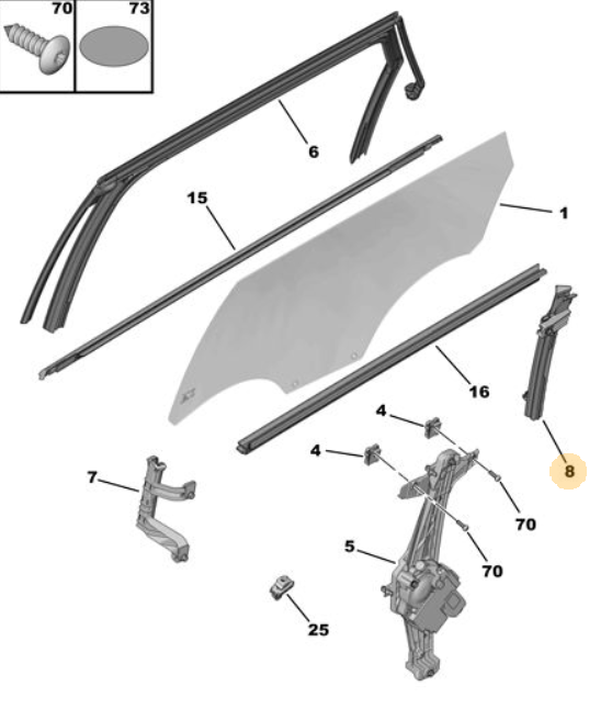 Orijinal Ön Cam Krikosu Sağ C5 C84 3008 P84E 5008 P87E 9840196880