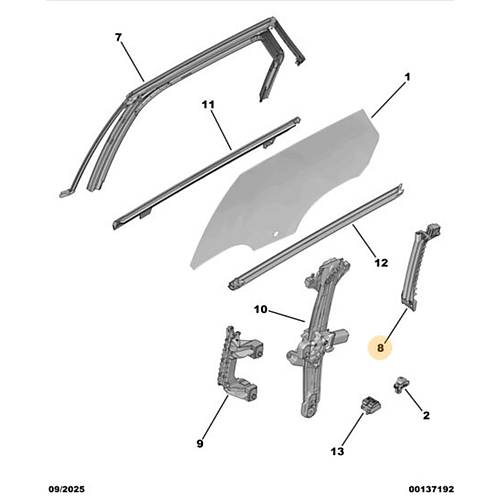 Orijinal Arka Cam Kriko Kızağı (Arka) -Sağ 3008 P64 GT 9841049980