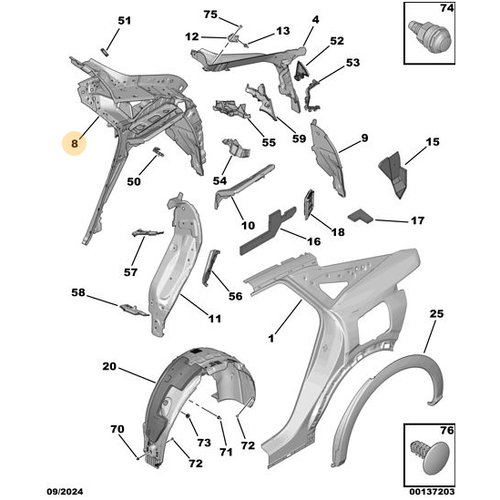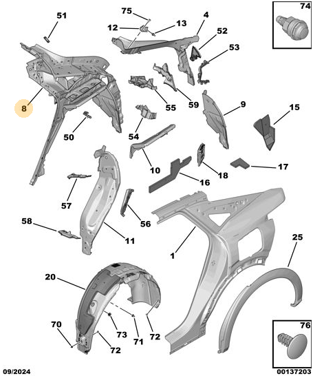 Orijinal Arka Çamurluk İç Sacı (Astar) -Sol 3008 P64 GT 1692257980