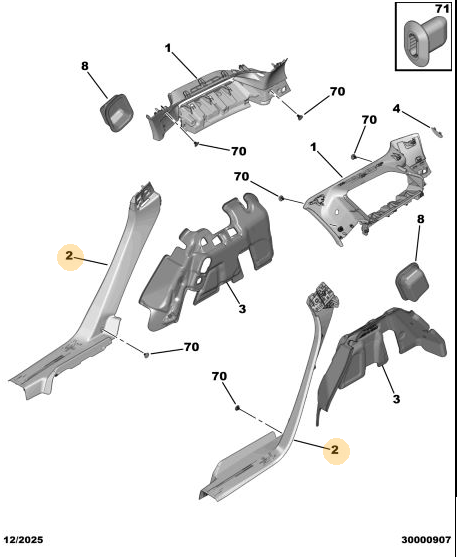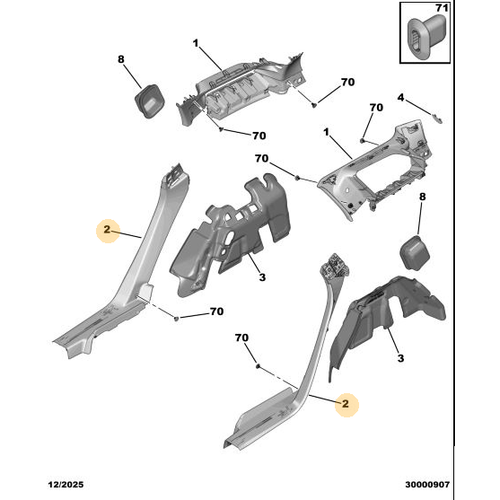 Orijinal Arka İç Şasi ve Kolon Kaplaması -Sağ Peugeot - 5008 P74 GT 98402443ZD