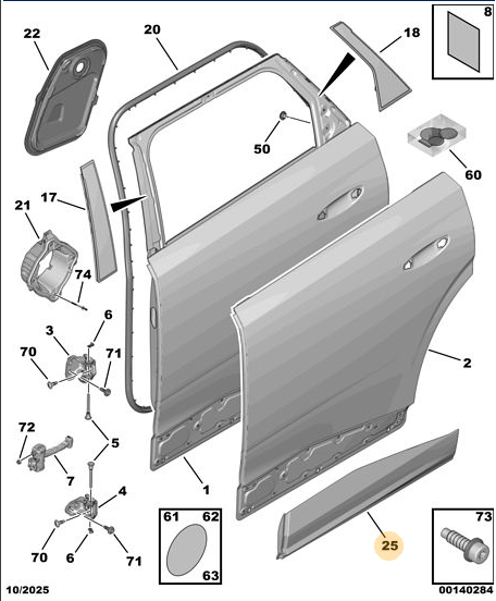 Peugeot - 5008 (P74) GT Sol Ön Kapı İç İzolasyon Paneli - Sızdırmazlık