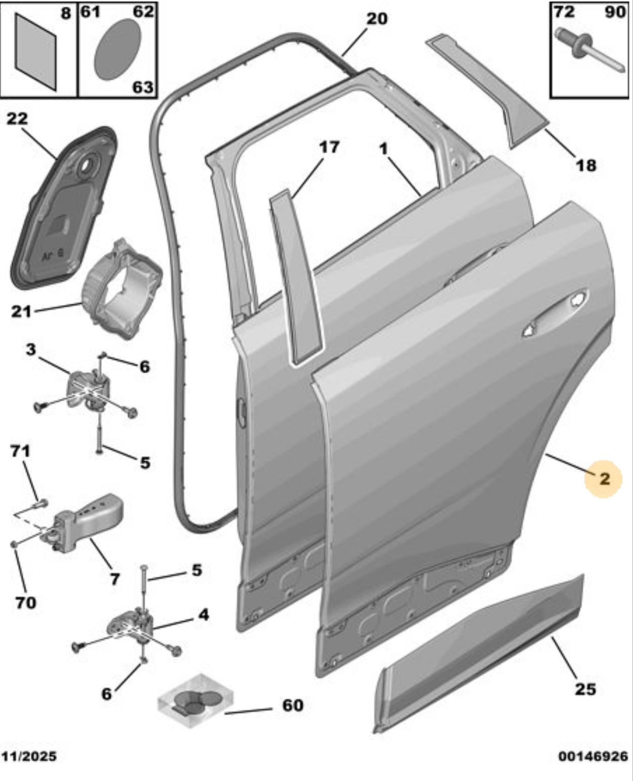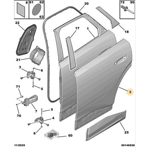Orijinal Arka Kapı Dış Saç Paneli -Sağ 3008 P64 GT 9839530680