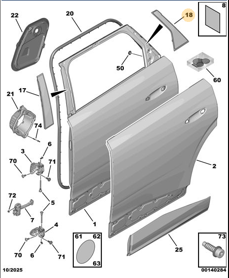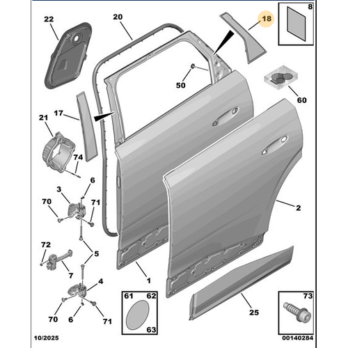 Orijinal Arka Kapı Üst Arka Çıtası - Sağ Peugeot - 5008 P74 GT 9841052980
