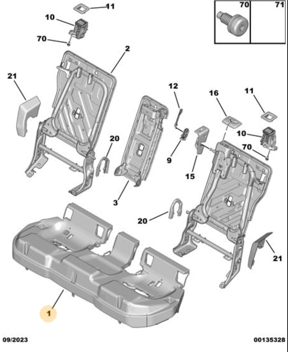 Orijinal Arka Koltuk Alt Minder İskeleti 3008 P64 GT 9852010280