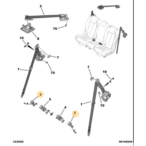 Orijinal Arka Koltuk Emniyet Kemeri Tokası -Sol Peugeot - 5008 P74 GT 9849500980