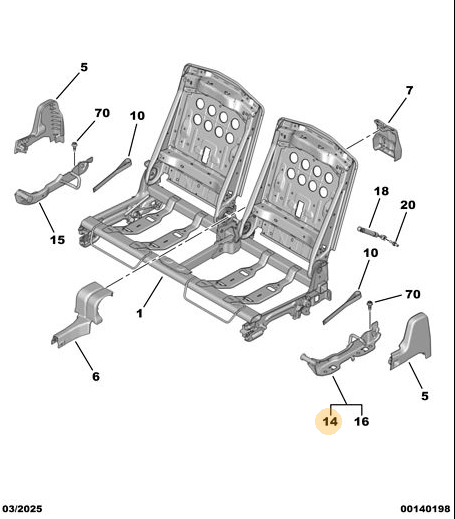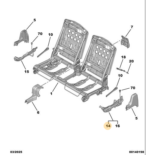 Orijinal Arka Koltuk Hareket Rayı - Sol Arka Peugeot - 5008 P74 GT 9865133280