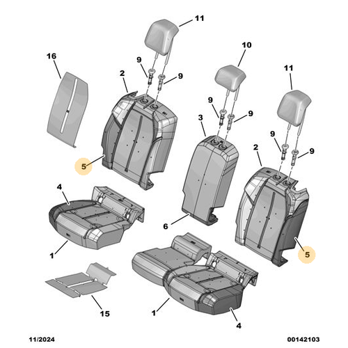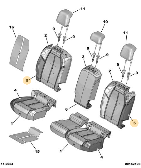 Orijinal Arka Koltuk Sırt Kılıfı -Sol Peugeot - 5008 P74 GT 98534710ZD