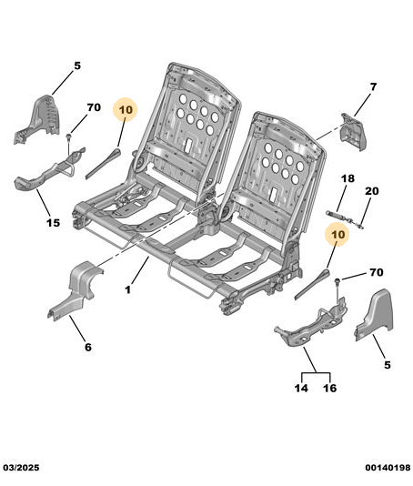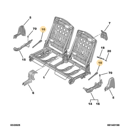 Orijinal Arka Koltuk Sırt Kilit Açma Çubuğu Peugeot - 5008 P74 GT 9856391380