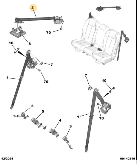 Orijinal Arka Orta Koltuk Emniyet Kemeri Mekanizması Peugeot - 5008 P74 GT 98410166XX