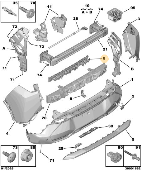 Orijinal Arka Tampon Orta Sabitleme Ayağı 3008 P64 GT 9839884480