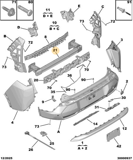 Peugeot - 5008 (P74) GT / 3008 (P64) Arka Tampon Mesnedi - Bağlantı Parçası