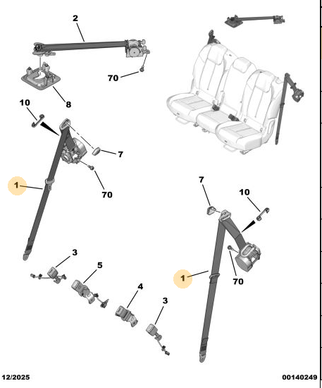 Orijinal Arka Yan Koltuk Emniyet Kemeri Mekanizması -Sol Peugeot - 5008 P74 GT 98399305XX
