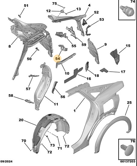 Orijinal Arka Yan Panel İç Destek Sacı -Sol 3008 P64 GT 9844503880