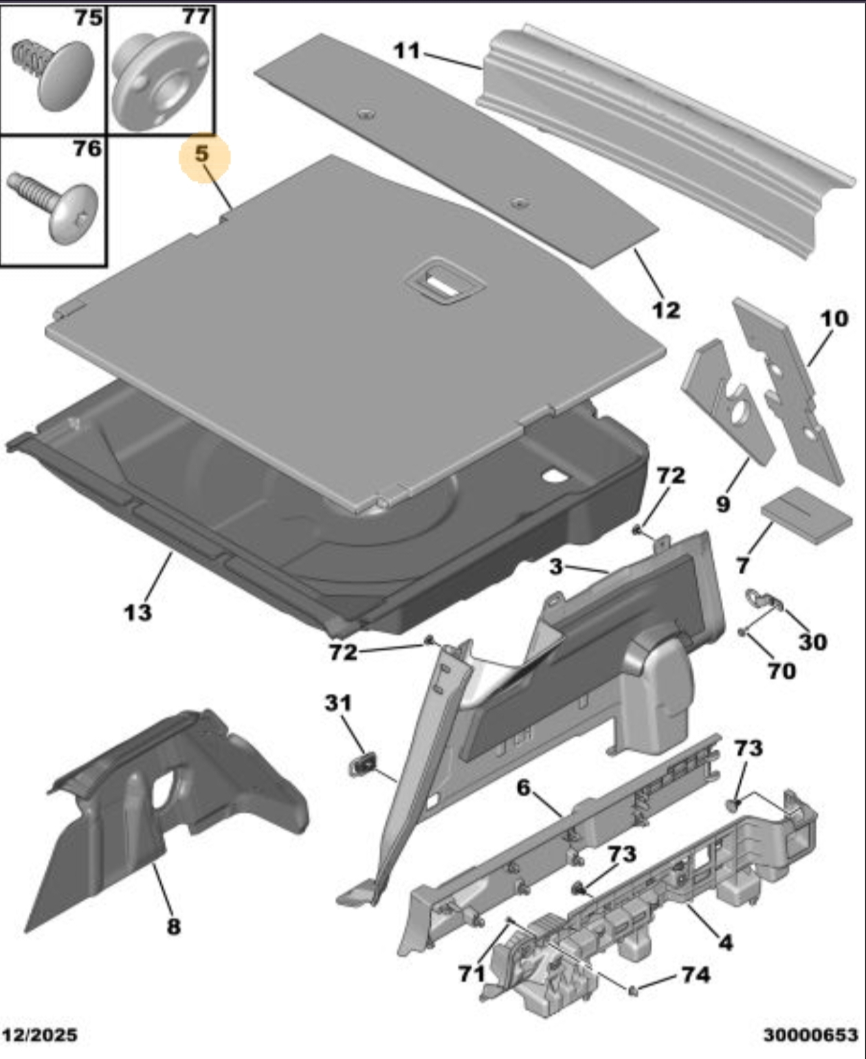 3008 (P64) GT Bagaj Ara Bölme/ Alt Üst Taban Halısı (Trionyx Gri)