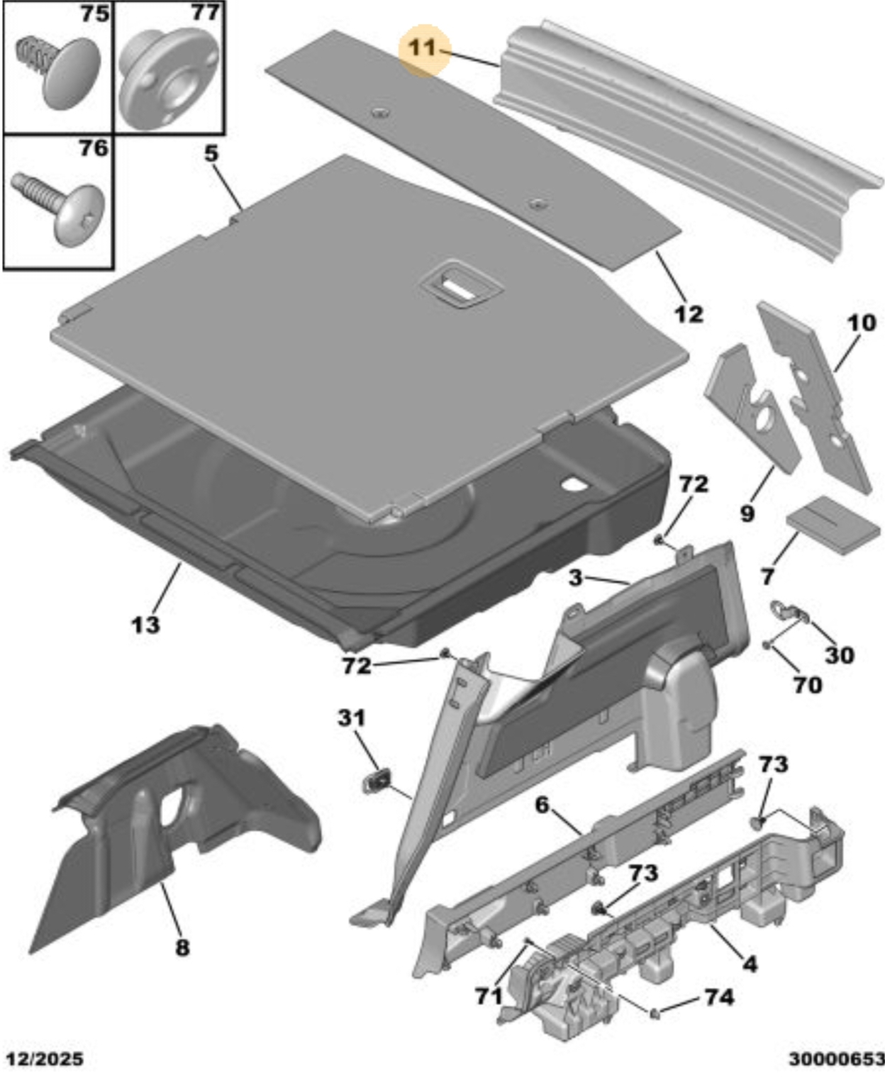 3008 (P64) GT Bagaj Ara Bölme/ Alt Üst Taban Halısı (Trionyx Gri)
