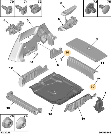 Orijinal Bagaj Kaplama Klipsi Peugeot - 5008 P74 GT 98203729XT