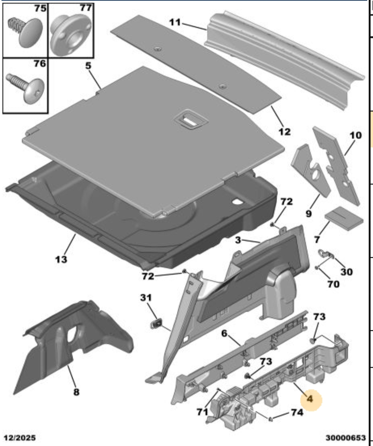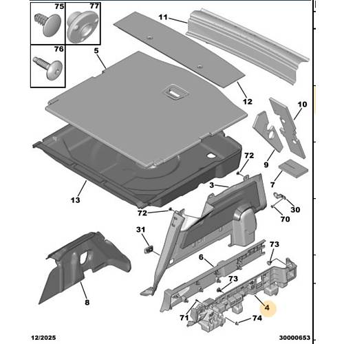 Orijinal Bagaj Yan Döşeme Desteği Plastiği -Sağ 3008 P64 GT 9840979280