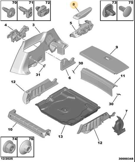 Orijinal Bagaj Yan Kaplama Üst Trim - Sol Peugeot - 5008 P74 GT 98443546ZD