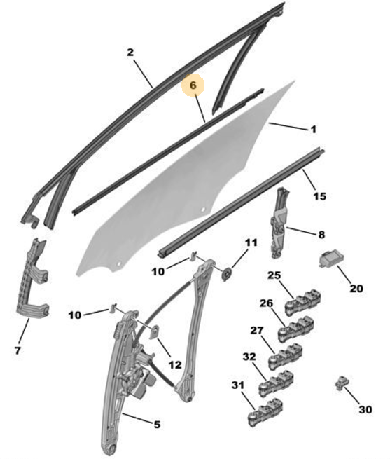 Orijinal C5 C84 Ön Kapı Camı Dış Yatay Fitili Sağ 9816731580