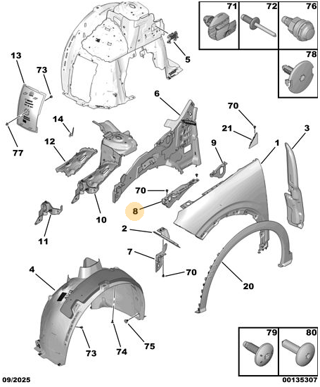 Peugeot - 5008 (P74) GT / 3008 (P64) Ön Çamurluk - Sağ