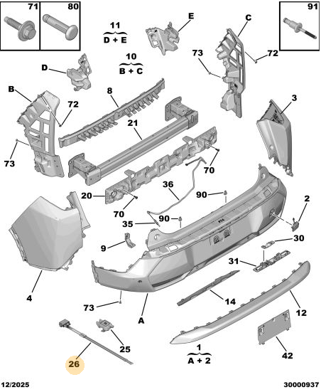 Peugeot - 5008 (P74) GT / 3008 (P64) Arka Tampon Mesnedi - Bağlantı Parçası