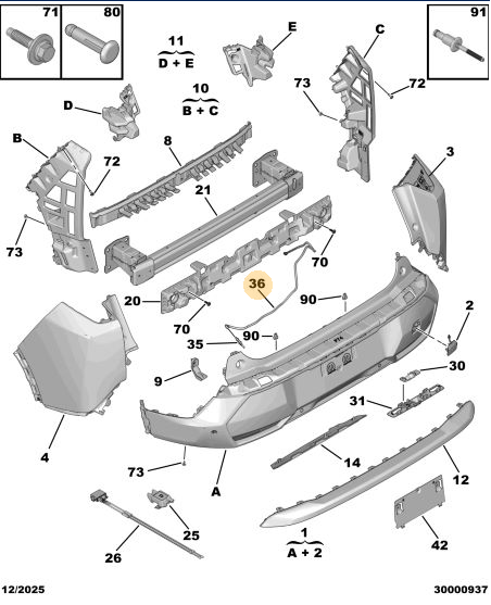 Peugeot - 5008 (P74) GT / 3008 (P64) GT Arka Tampon Mesnedi - Bağlantı Parçası