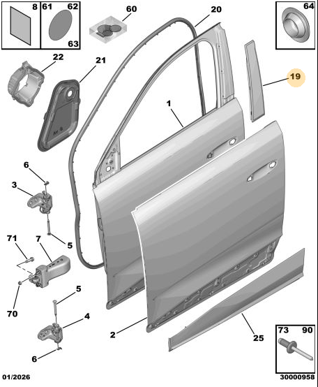 Peugeot - 5008 (P74) GT Sağ Ön Kapı İç İzolasyon Paneli - Sızdırmazlık
