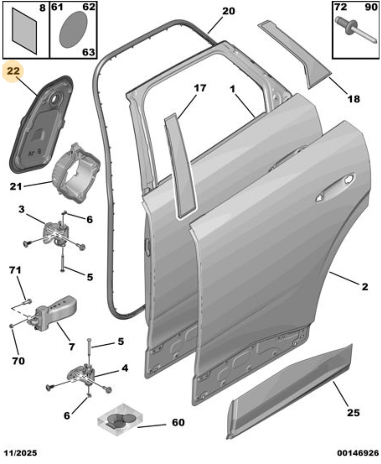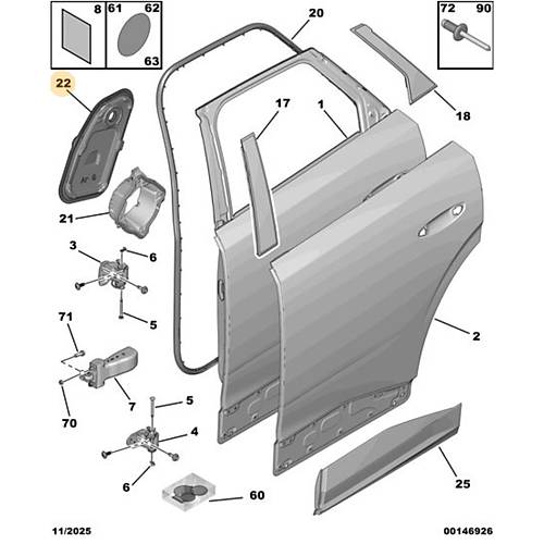 3008 P64 GT Arka Kapı Dış Saç Paneli -Sol