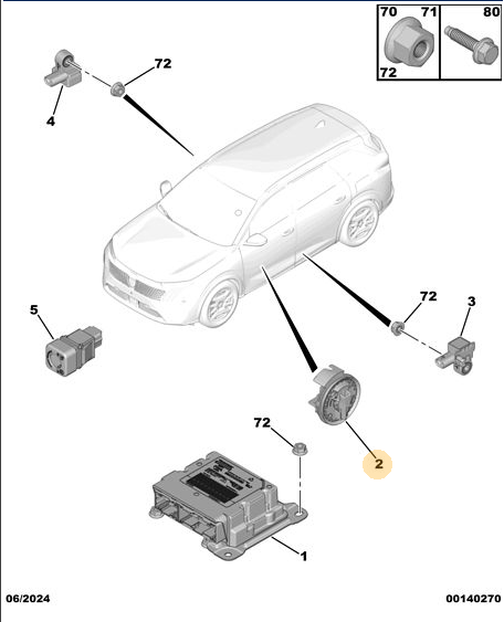 Orijinal Kapı İçi Darbe / Basınç Sensörü Peugeot - 5008 P74 GT 9851497480
