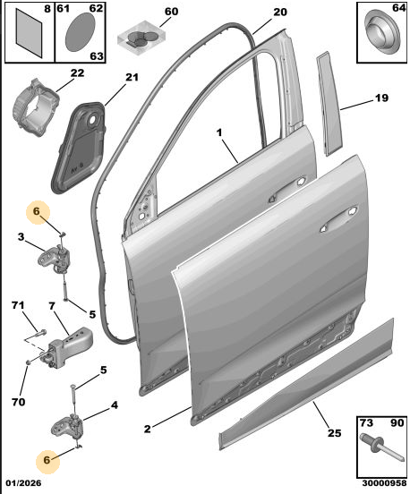 ORIJINAL Kapı Menteşe Klipsi 5008 P74 GT / 307 904444