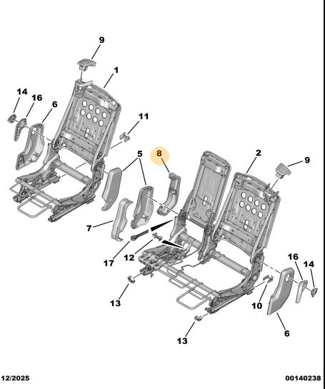 Orijinal Koltuk Eğim Mekanizması Peugeot - 5008 P74 GT 9850782680