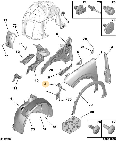 Peugeot - 5008 (P74) GT / 3008 (P64) GT Ön Çamurluk - Sağ