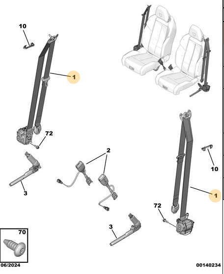 Orijinal Ön Emniyet Kemeri Mekanizması - Sağ Peugeot - 5008 P74 GT 98534265XX