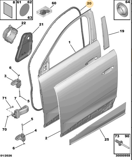 Orijinal Ön Kapı Fitili - Sağ Peugeot - 5008 P74 GT 9839764480