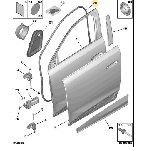 Peugeot - 5008 (P74) GT Sağ Ön Kapı İç İzolasyon Paneli - Sızdırmazlık