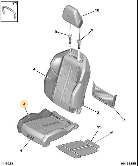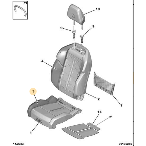 Orijinal Ön Koltuk Alt Minder Kılıfı -Sol Peugeot - 5008 P74 GT 98506812ZD