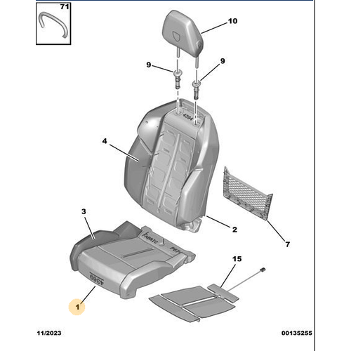 Orijinal Ön Koltuk Alt Minderi - Sağ Peugeot - 5008 P74 GT 9843271180