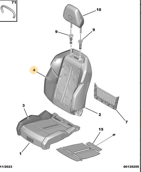 Orijinal Ön Koltuk Sırtlık Kılıfı - Sağ Peugeot - 5008 P74 GT 98506832ZD