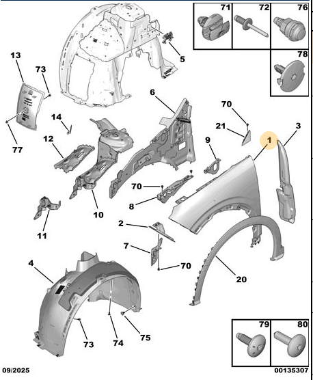 Orijinal Ön Sağ Çamurluk (5008 P74 GT / 3008-P64) 9840878780
