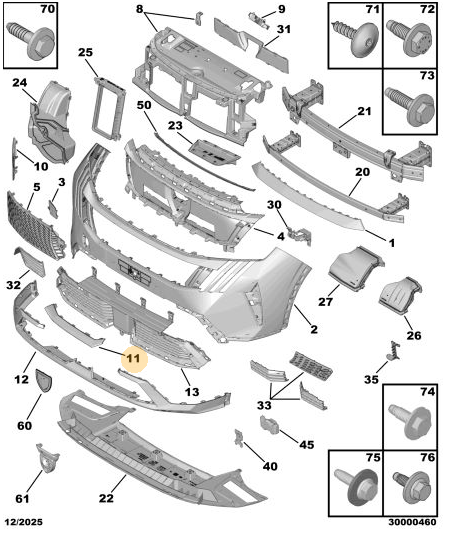 Peugeot - 5008 (P74) GT - 3008 (P64) Ön Tampon Izgarası Takviyesi