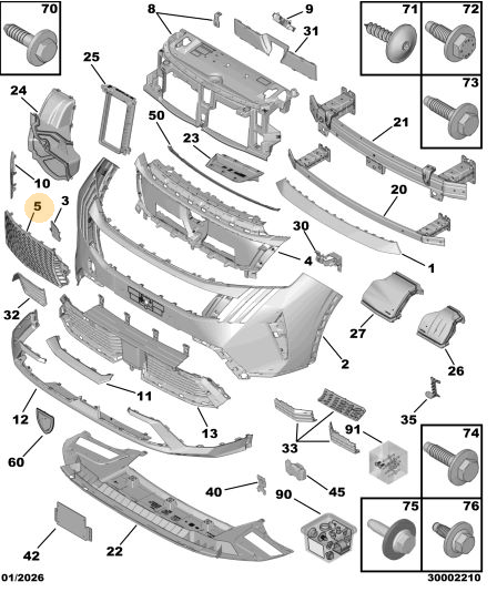 Peugeot - 5008 (P74) GT - 3008 (P64) GT Ön Tampon Izgarası Takviyesi