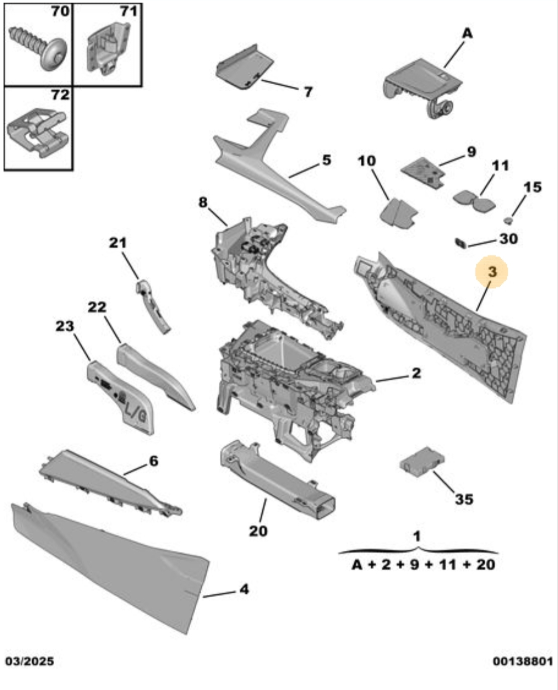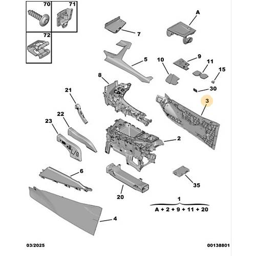 Orijinal Orta Konsol Yan Bakaliti -Sağ 3008 P64 GT 9842407880
