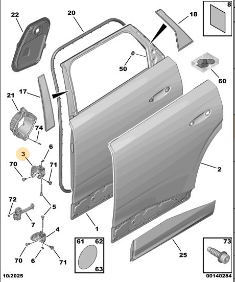 Orijinal Sağ Arka Kapı Üst Menteşe Peugeot - 5008 P74 GT 1689789980