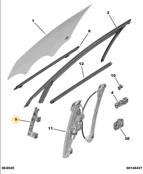 Orijinal Sağ Cam Kızak Peugeot - 5008 P74 GT 9839757180