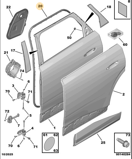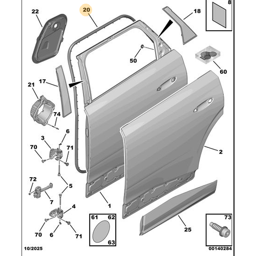 Orijinal Sol Arka Kapı Fitili Peugeot - 5008 P74 GT 9839896680
