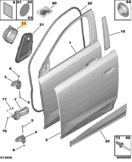 Peugeot - 5008 (P74) GT Sağ Ön Kapı İç İzolasyon Paneli - Sızdırmazlık