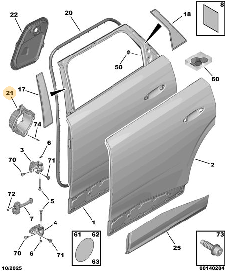 Orijinal Sol Kapı İzolatör Peugeot - 5008 P74 GT 9843594280