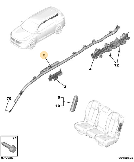 Orijinal Sol Tavan Perde Airbag Peugeot - 5008 P74 GT 9839929680